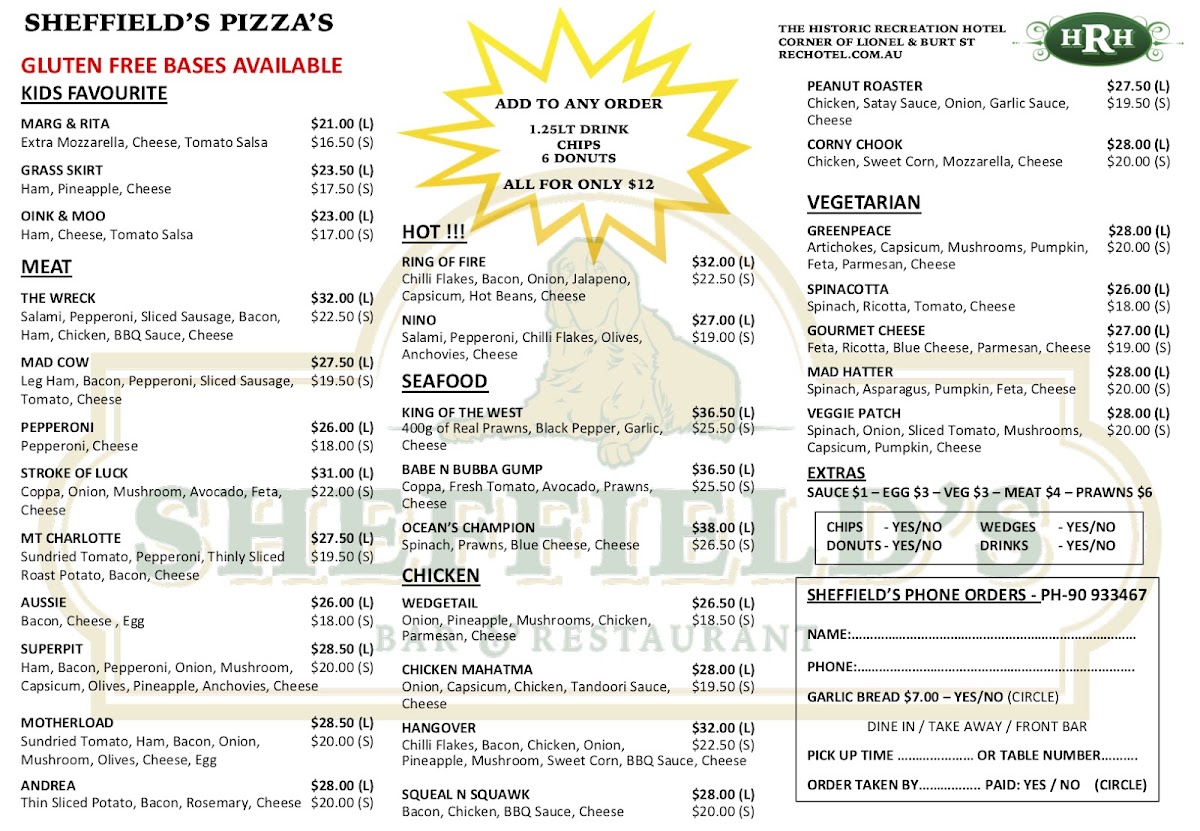 Sheffield's offers a welcoming blend of classic bar and grill dishes, lively drinks, and authentic woodfired pizzas in the heart of Kalgoorlie. Known for its well-priced buffet that delivers good variety and quality, diners appreciate the value and friendly service. The signature woodfired pizzas stand out, praised for their smoky, crisp crusts and fresh toppings—perfect for takeaway or enjoying alongside a cold beer or cider while watching footy in a comfortable, casual setting. The menu adapts to both quick bites and leisurely meals, catering to diverse tastes. While occasional kitchen closures and menu changes occur, Sheffield's remains a favored spot for its atmosphere, approachable dining style, and satisfying flavors that capture the local pub and grill spirit. Whether seeking a hearty meal or a relaxed drink, the food here strikes a fine balance between quality and comfort.